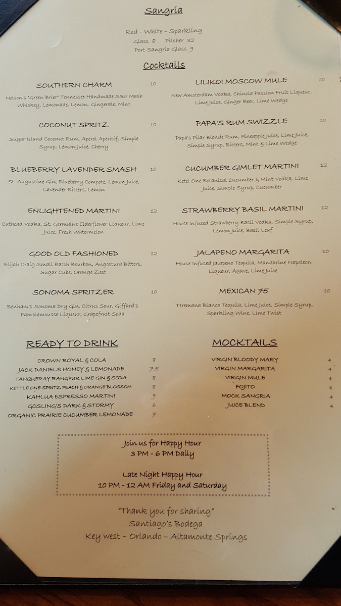 Santiago's Bodega Altamonte Springs Menu (2025 Update)