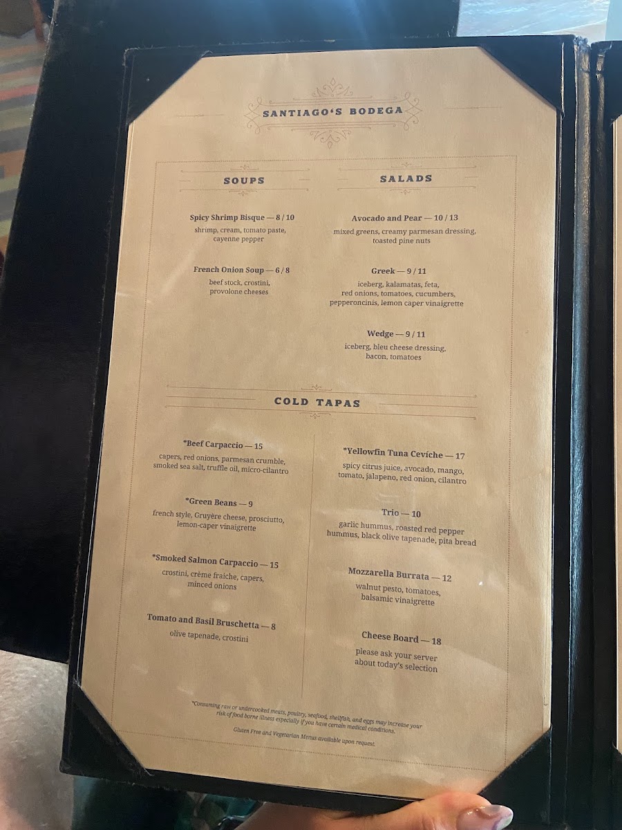 - Cold Tapas: Delight in the Smoked Salmon Carpaccio or indulge in the rich flavors of Yellowfin Tuna Ceviche.